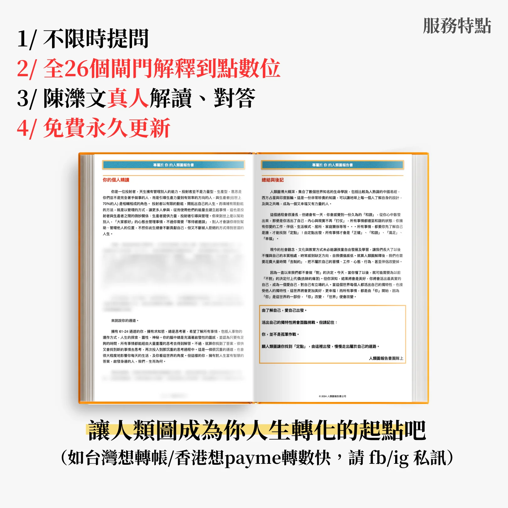 所有閘門解釋到點數位,確保客人最深入了解自己的人類圖。